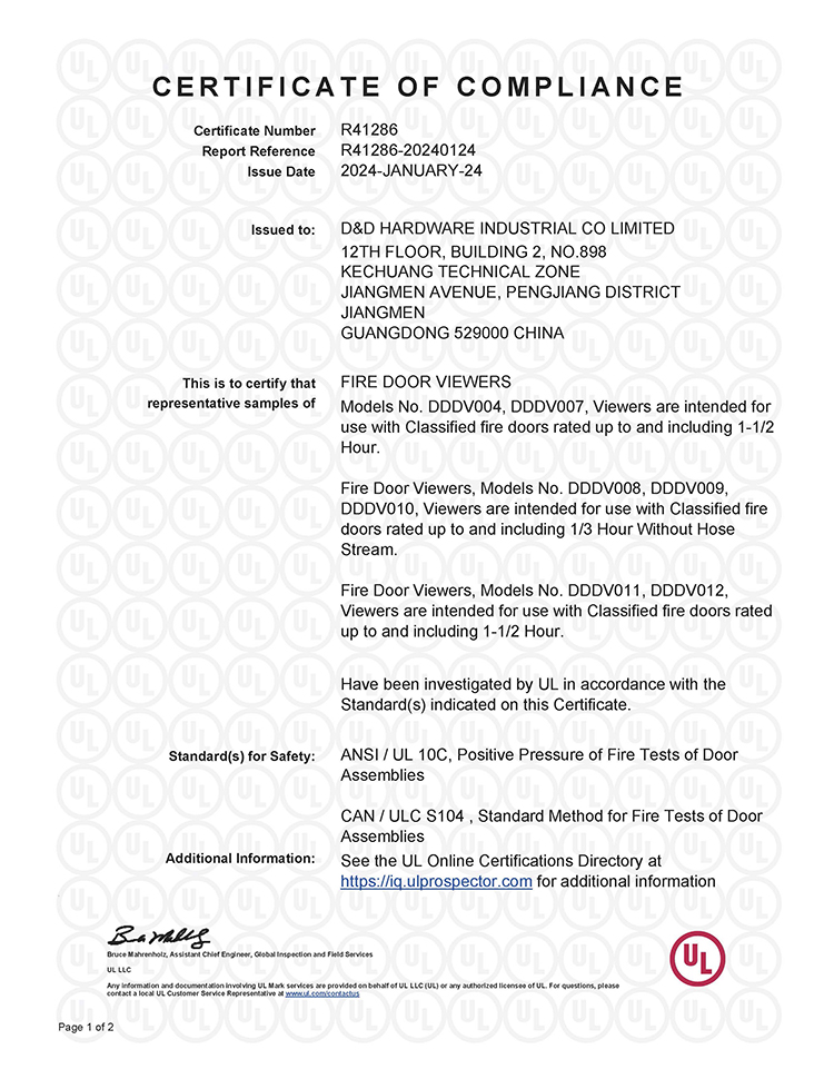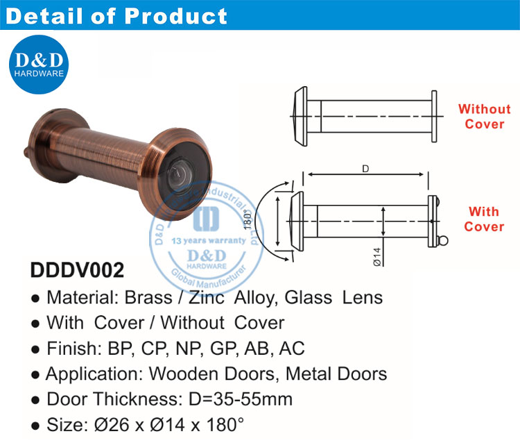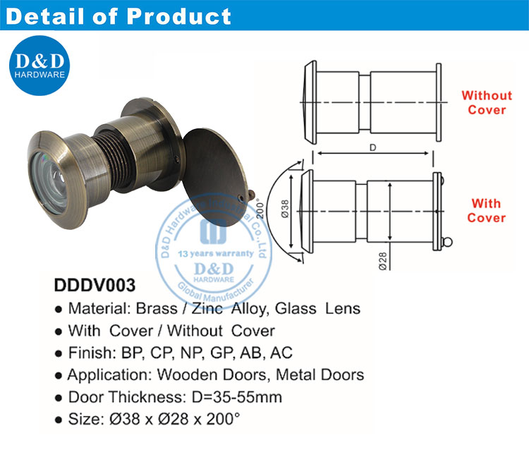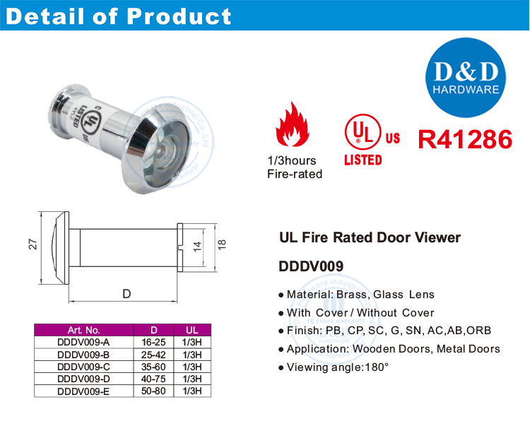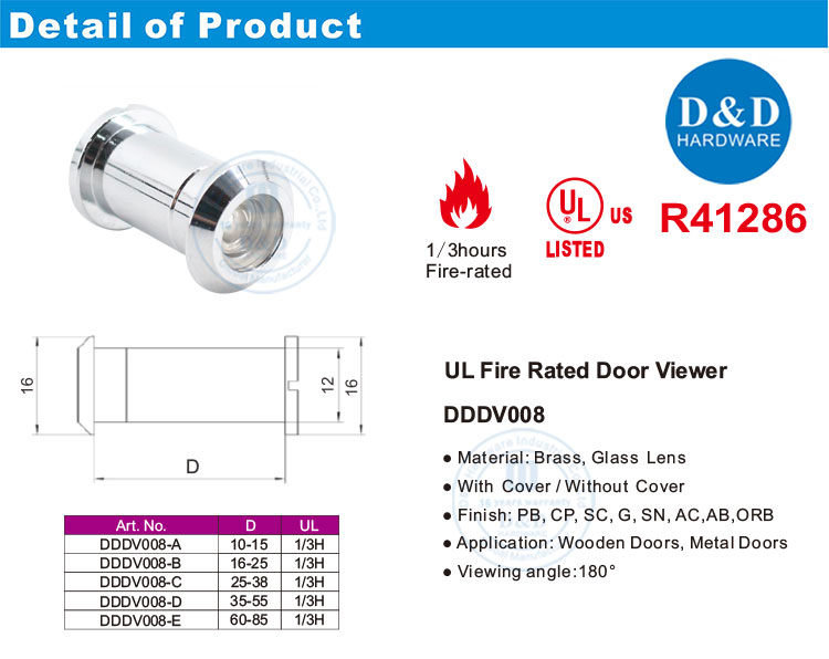Door Hardware Fittings Security Accessory Matte Black Polished Chrome UL Listed Door Knocker Peephole Fire Rated Spyhole 180 Degree Visor Brass Door E