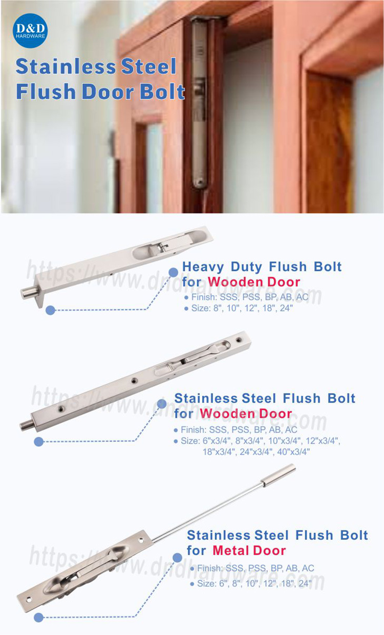 Stainless Steel Zinc Alloy Brass Metal Door Hardware Accessories Fittings Security Heavy Duty Door Latch Tower Barrel Bolt Flush Bolt