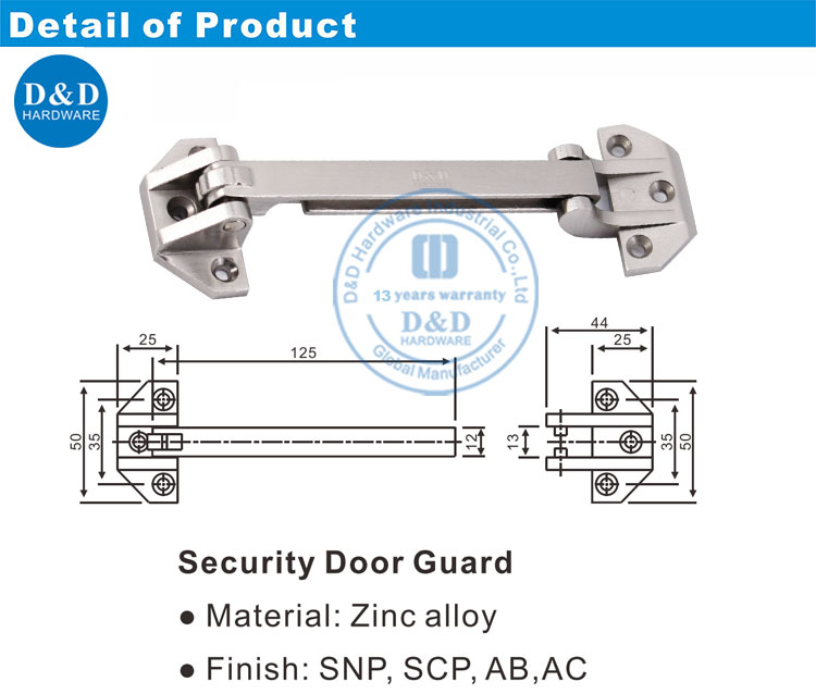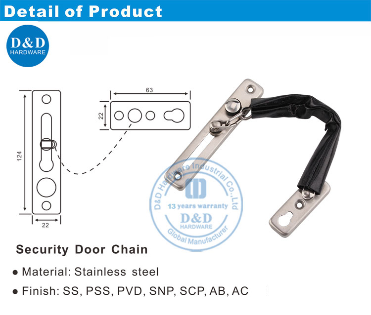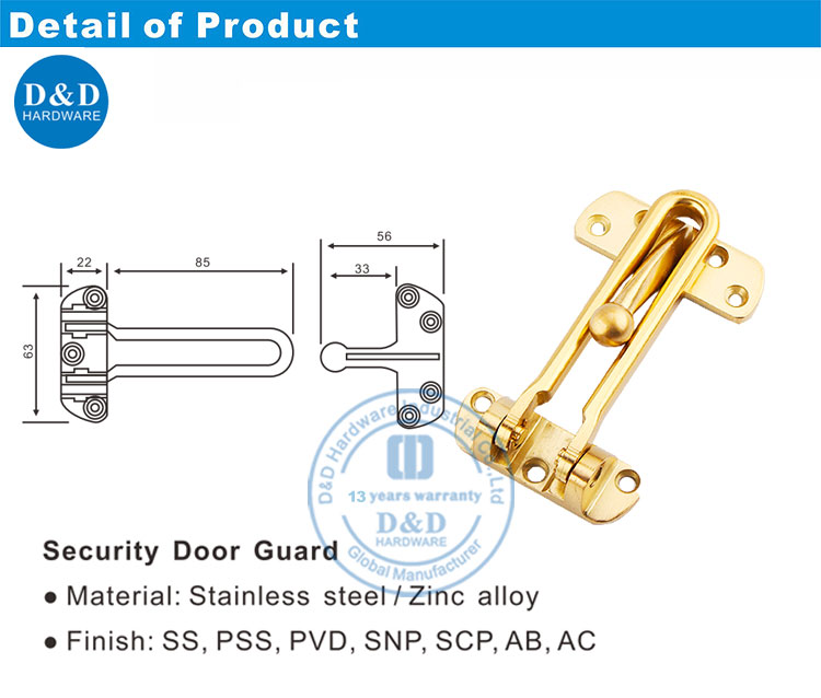 High Security Stainless Steel Solid Brass Zinc Alloy Hotel Apartment Household Door Lock Door Guard Chain for Bedroom