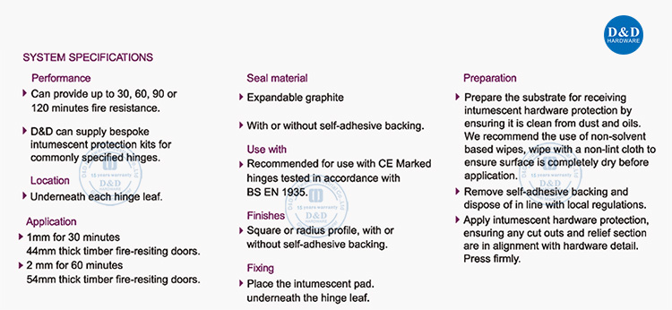 Concealed Hinge Door Closer Viewer Peephole Lock Hinge Protection Kits Fire Rated Intumescent Gasket Intumescent Pads