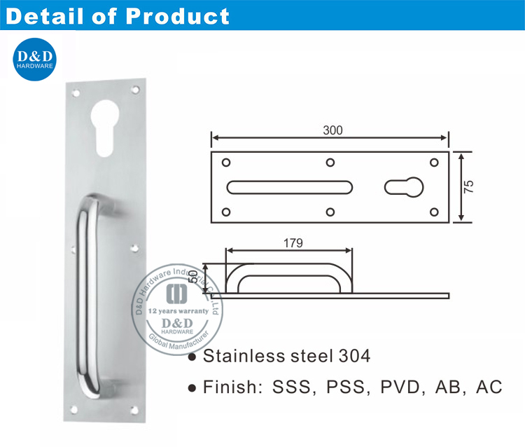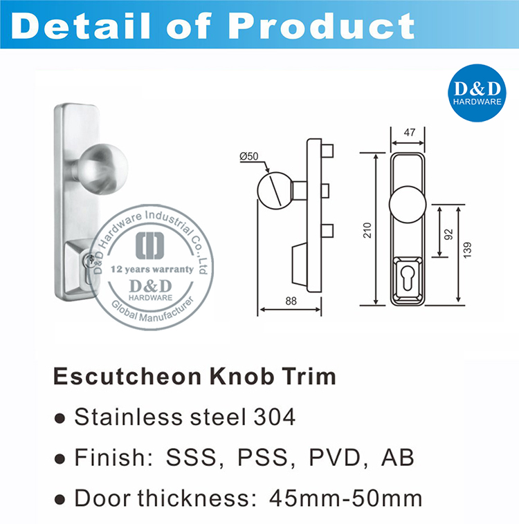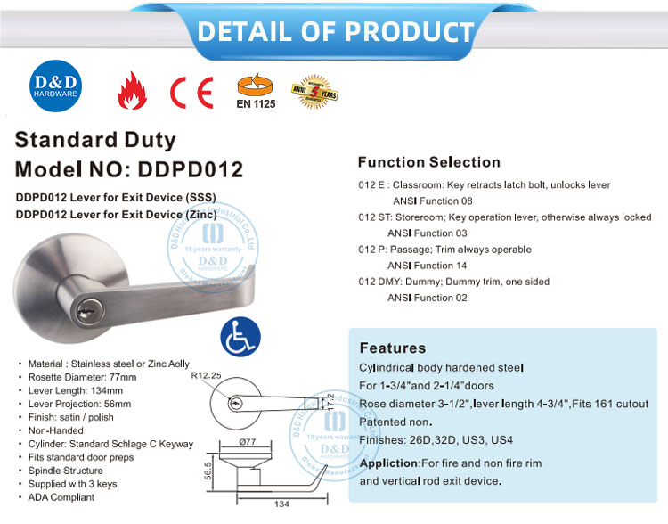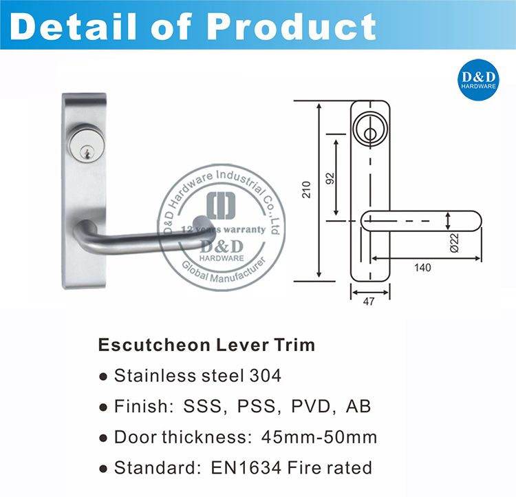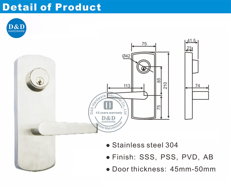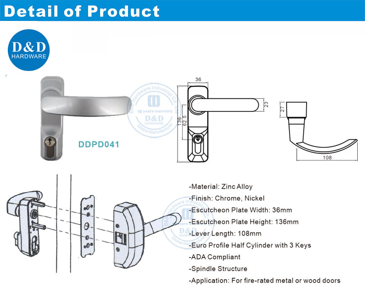 Economical Zinc Alloy Stainless Steel Outside Door Trim Handle Lever Lock with Keys
