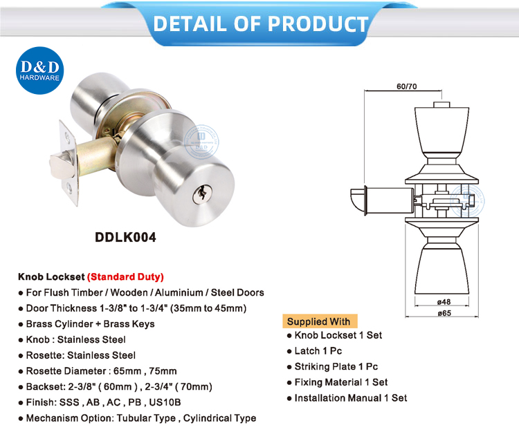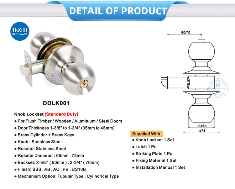 Door Knob Lock Tubular Lock Stainless Steel Zinc Alloy Standard Duty Handle Knob Lock Front Door Locksets