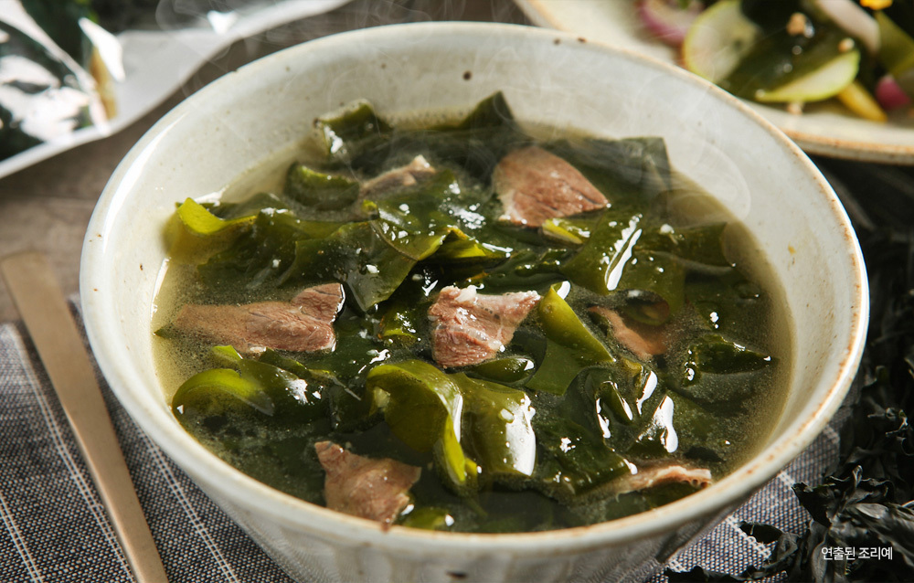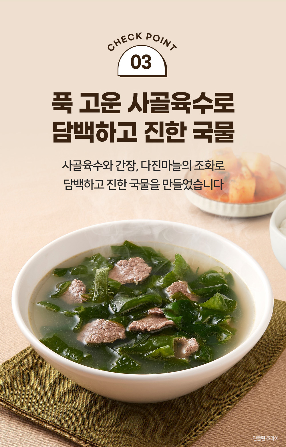 푹 고아낸 사골육수에 직접 볶은 미역에 소고기까지!