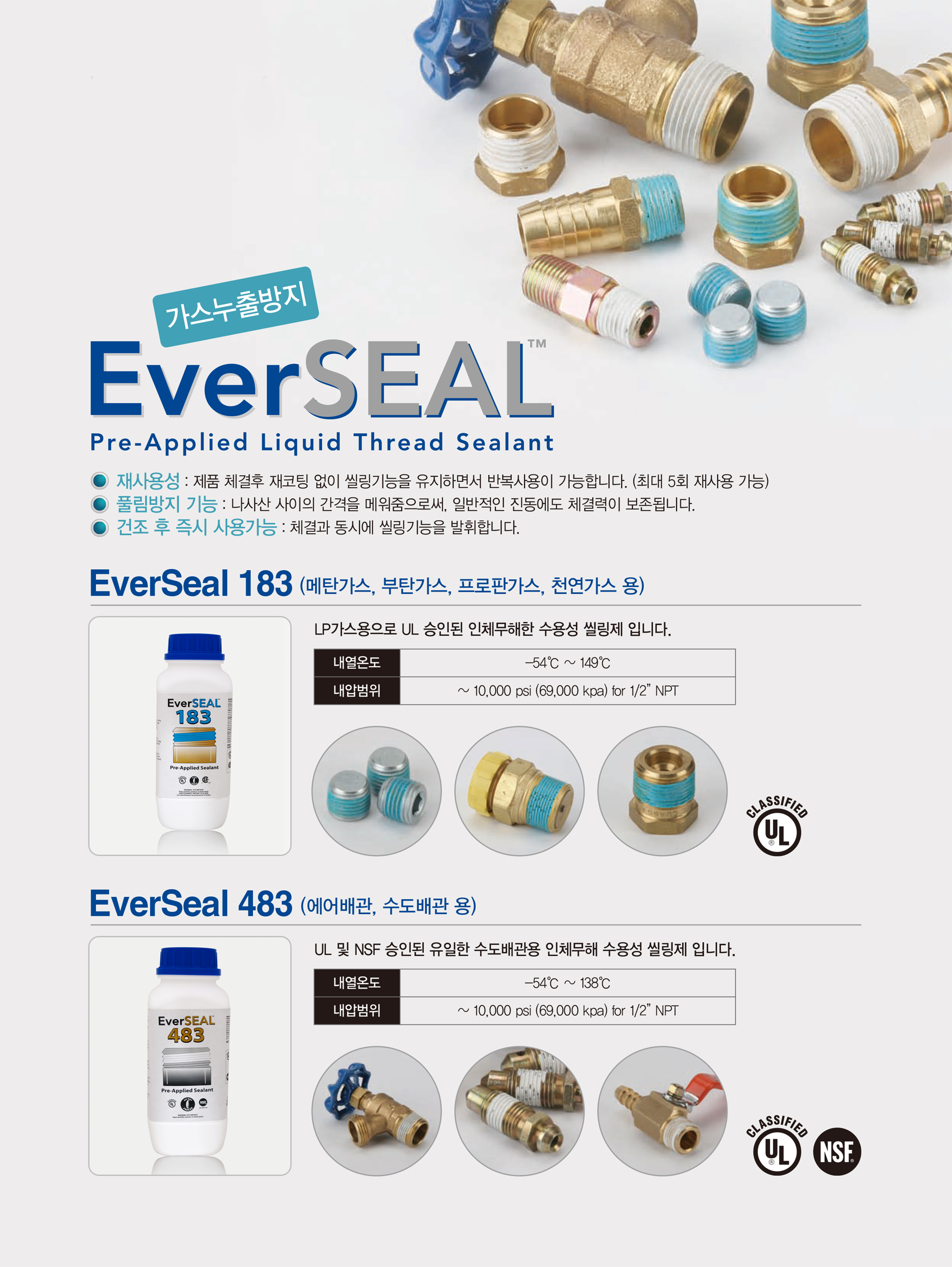 NSF인증 사전도포형 액상 씰링제 (Sealant) 인 NasaSeal (나사씰) for Air & Water 제품은,에어, 니트로젠, 물 등의 기밀성 유지에 사용됩니다.