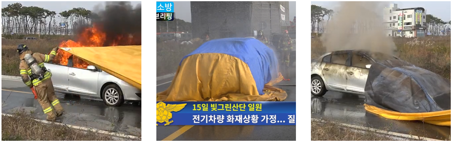 01 5분만에 진압 가능화재가 발생하여 연소 중인 자동차에 산소 공급을 차단하고 화염과 연기의 발생을 억제함으로써,