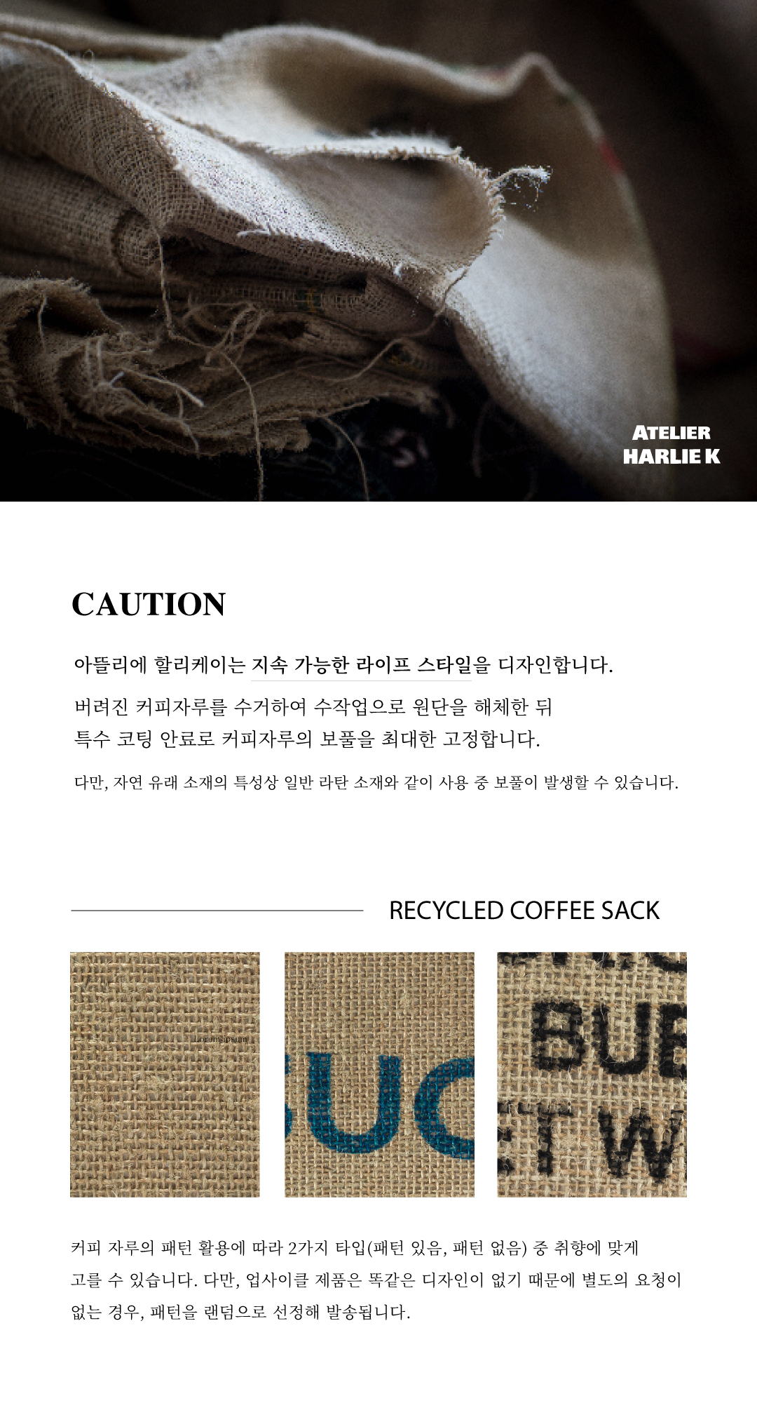 낡은 커피포대를 업사이클하여 제작한 수공예 마켓백