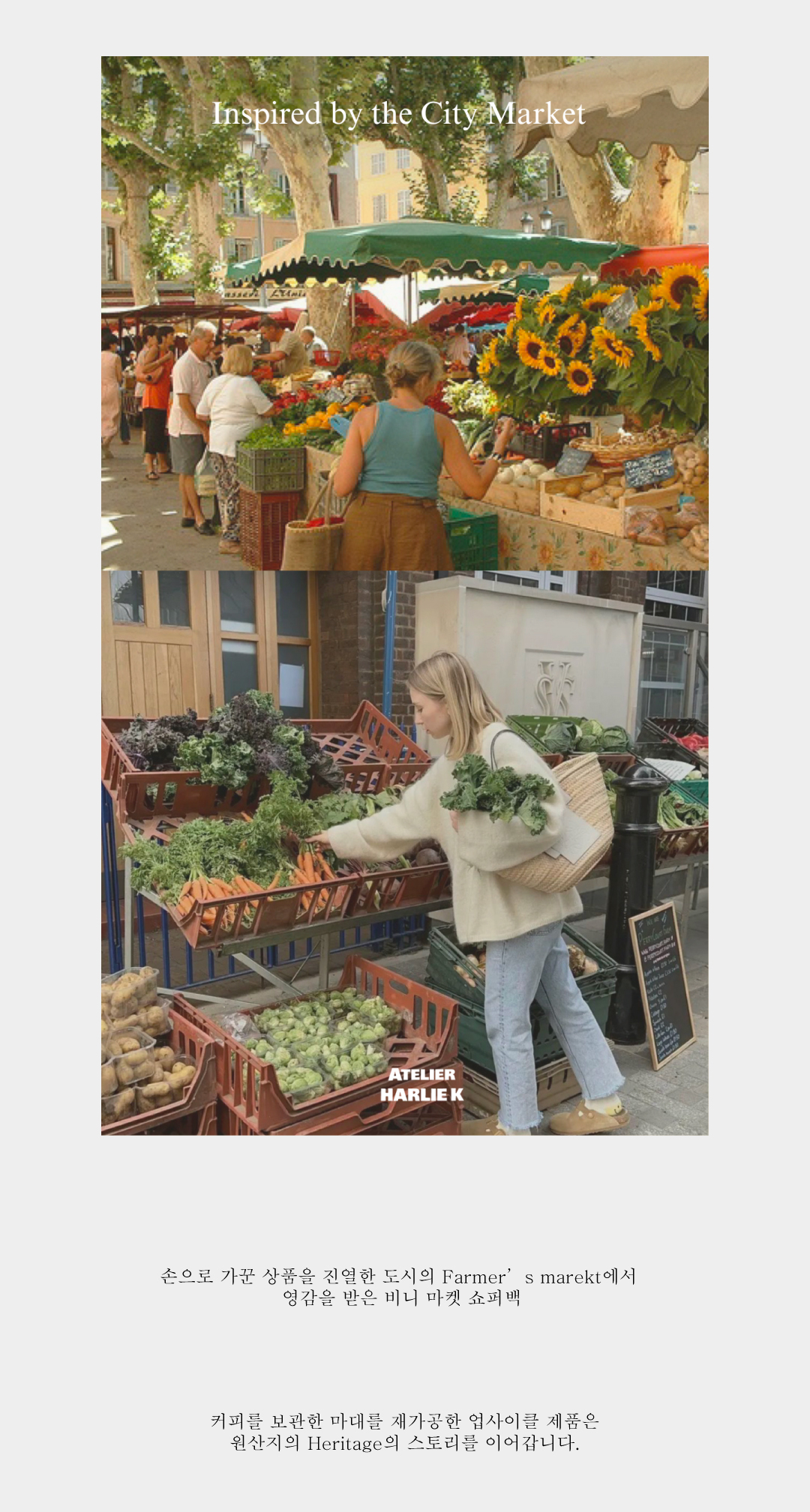 손으로 가꾼 상품을 진열한 도시의 Farmer’s marekt에서 영감을 받은 ‘비니 마켓 솔더백’