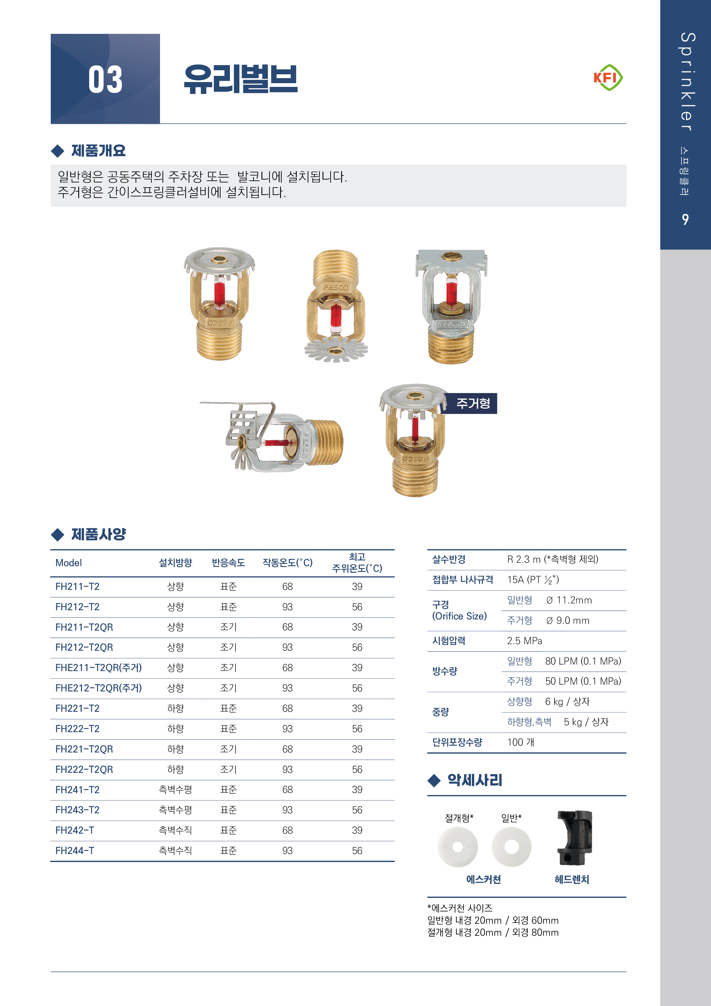 일반형은 공동주택의 주차장 또는 발코니에 설치됩니다. 주거형은 간이스프링클러설비에 설치됩니다.